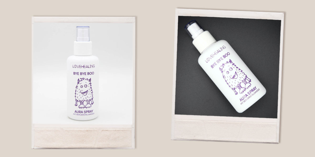 Das neue Aura Spray BYE BYE BOO von LOVEHEALING sorgt für Geborgenheit und Entspannung bei kleinen und auch großen Angsthasen.