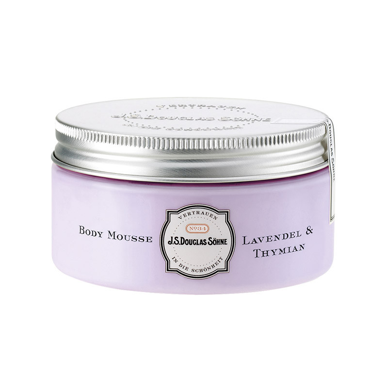 - ©J.S. Douglas Söhne Body Mousse mit Lavendel, Thymian und Kakaobutter. Ca. 13 Euro über douglas.de