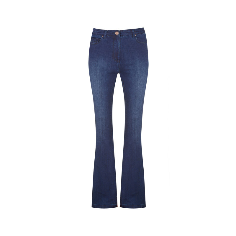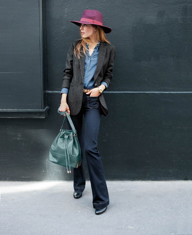 Was die Waschung angeht, sollte man sich folgendes merken: Je dunkler das Denim, desto schicker. Eine dunkle Schlaghose kombiniert mit einer Schluppenbluse, Tweed Blazer und hohen Schuhen ist absolut bürotauglich, denn trotz der engen Passform am Oberschenkel, ist sie durch den Stretch-Anteil (darauf sollte man achten) extrem bequem.