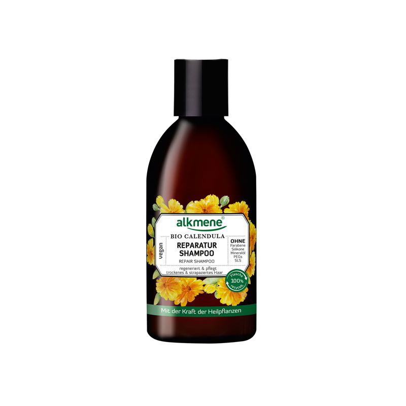 - Shampoo mit Calendula für mehr Glanz von der Naturkosmetikmarke ©Alkmene, ca. 5 Euro, in Drogerien