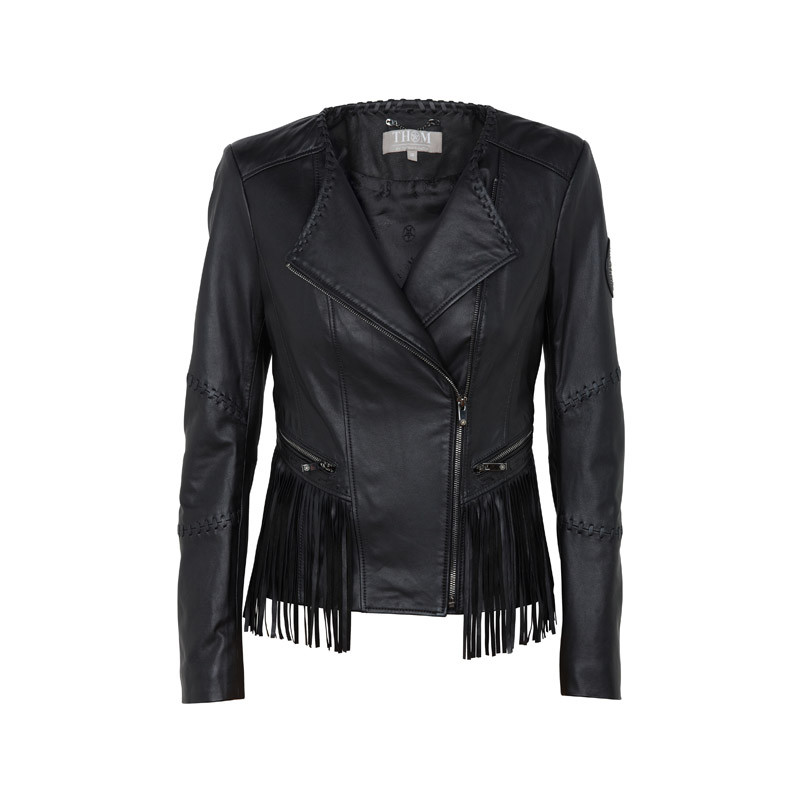 - Schwarze Lederjacke mit Fransen von ©Thom by Thomas Rath. Ca. 480 Euro, über QVC