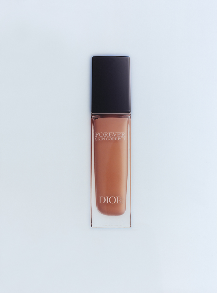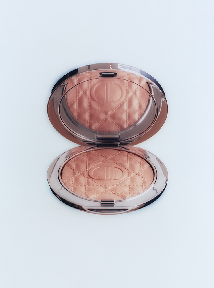 Das Finish entstand mit Dior Forever Skin Glow, punktuell ergänzt durch Dior Forever Skin Correct. Den Schimmer setzte Dior Forever Glow Luminizer, je nach Hautton in unterschiedlichen Nuancen (u. a. 01 Nude Halo, 02 Gold Halo, 03 Pink Halo, 04 Pink Strobe, 05 Blue Strobe, 06 Opal Sequin, 07 Copper Sequin).