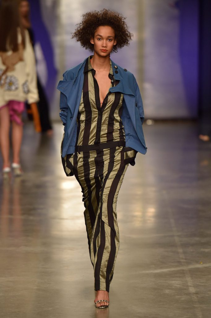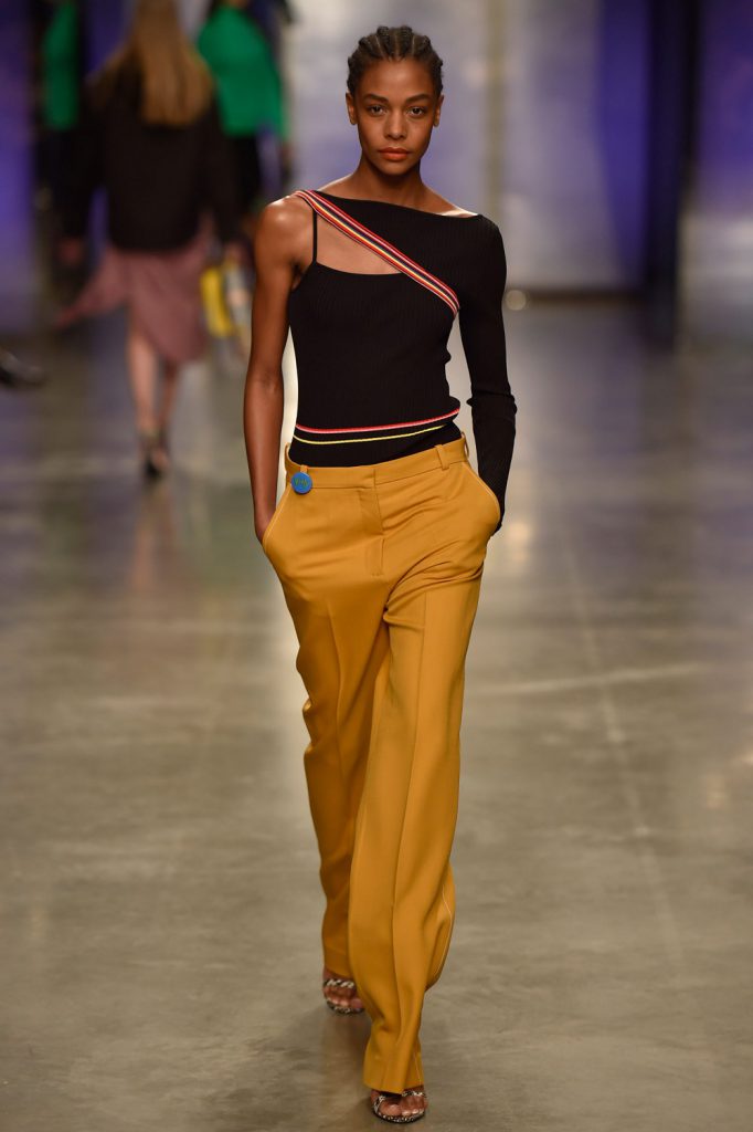 Auch bei Topshop Unique ging es zurück in die 90er: Zur Musik von Moby und den Stone Roses präsentierte das britische Label bunte High-Street-Fashion. Überdimensionierte Strickkleider kontrastieren mit seidig fließenden Slipdresses.