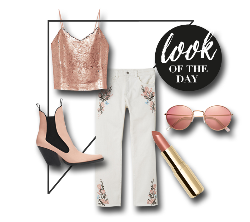 Top von ZARA, ca. 40 Euro | Schuhe von ZARA, ca. 60 Euro | Hose von H&M, ca. 40 Euro | Lipstick von H&M, ca. 10 Euro | Sonnenbrille von H&M, ca. 8 Euro