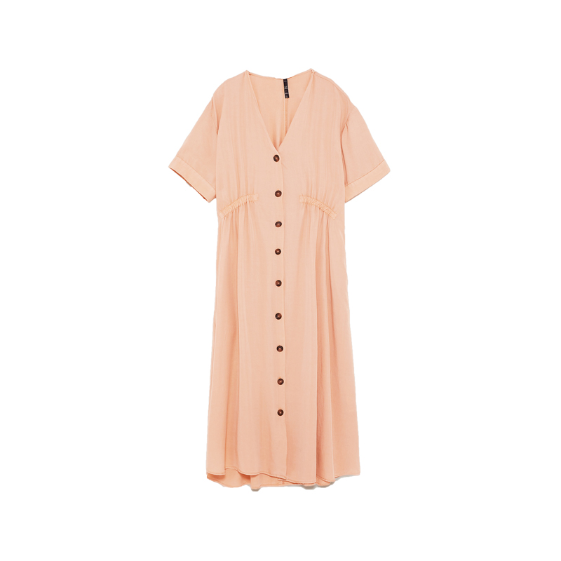 Kleid von ZARA, ca. 26 Euro | Ohrring von Stradivarius, ca. 9 Euro | Schuhe von ZARA, ca. 40 Euro | Tasche von ZARA, ca. 20 Euro | LIPaffair Color & Care Lipstick No. 551 von L.O.V, ca. 10 Euro