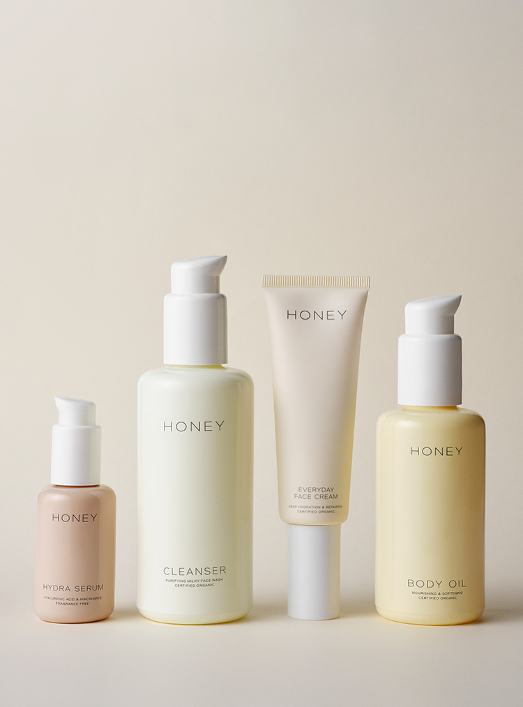 Die HONEY-Kollektion vereint das preisgekrönte Hydra Serum, die sanft pflegende Everyday Face Cream, einen beruhigenden Cleanser, ein Gesichtsöl, das mit einer nährenden Mischung aus Pflanzenextrakten angereichert ist, sowie ein luxuriöses Körperöl. Ergänzt wird das Sortiment durch das innovative Double A Vitamin-Serum. Alle Produkte zeichnen sich durch ihre natürlichen, biologischen und klinisch getesteten Inhaltsstoffe aus, die höchste Umwelt- und Gesundheitsstandards erfüllen.