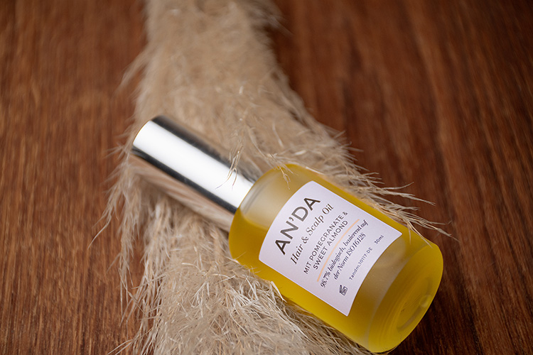 Dieses vielseitige Bio Haaröl ist das erste Produkt der AN’DA Haarlinie. Es bändigt Frizz, spendet Feuchtigkeit und pflegt nicht nur das Haar, sondern auch die Kopfhaut. Dies ist einer Reihe von großartigen Inhaltsstoffen zu verdanken, wie Süßmandel, Granatapfel und Buriti. Das Hair & Scalp Oil ist silikonfrei, nicht fettend und leicht. Nur 2-3 Tropfen in feuchtem oder trockenem Haar anwenden.