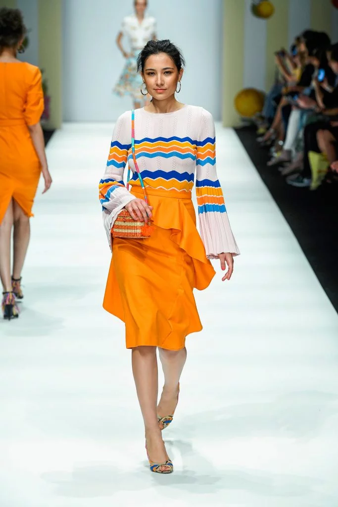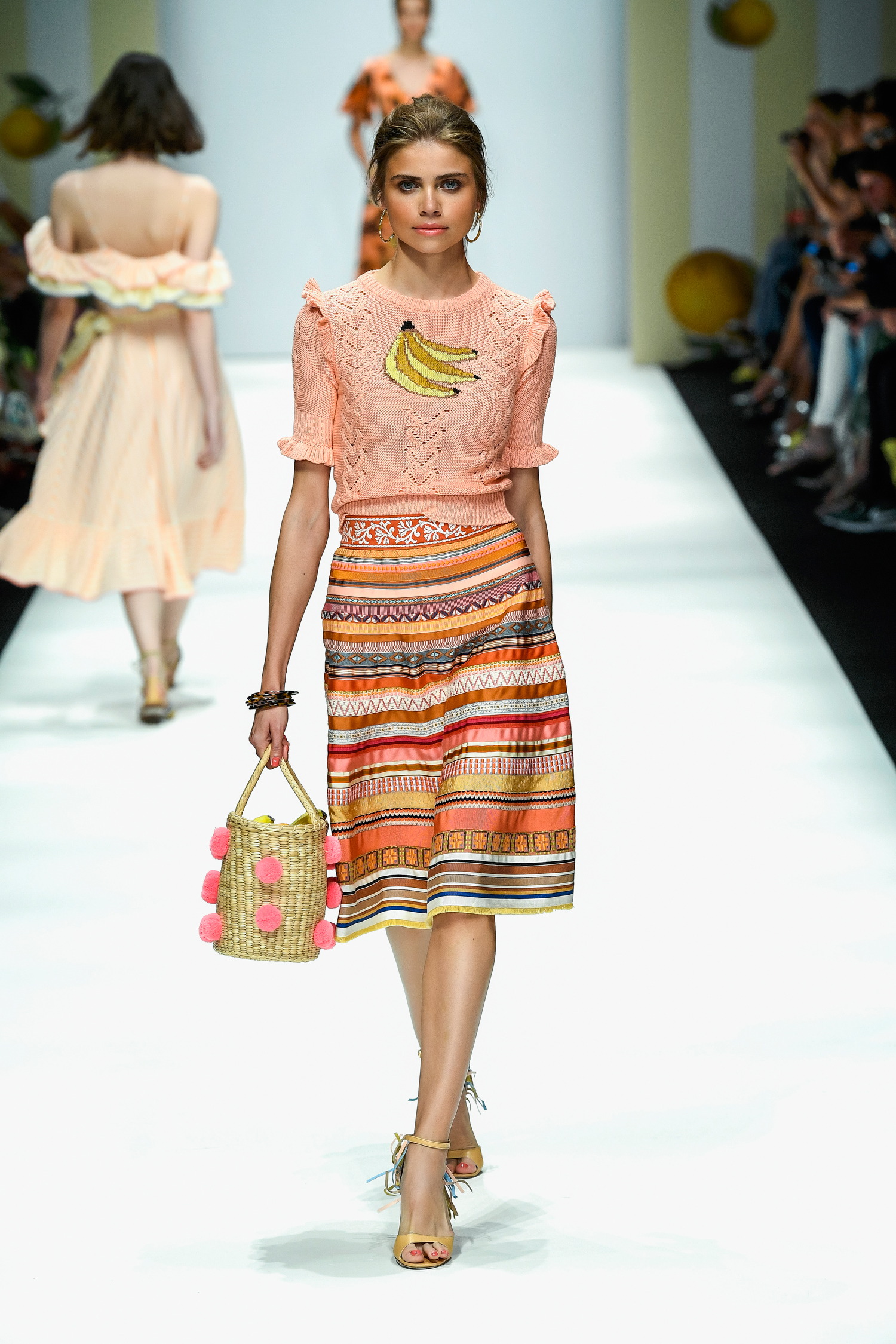 Wer die Runway Show zur kommenden Spring/Summer 2019 Kollektion der österreichischen Designerin Lena Hoschek mitverfolgte, dem lief mit Sicherheit das Wasser im Mund zusammen, denn der Kollektionsname war wie immer Programm! TUTTI FRUTTI ist ein Fashion-Cocktail aus lebendigen Farben, tropischen Motiven und fruchtigen Prints. Carmen Miranda mit ihrem weltbekannten „Tutti-Frutti Hat“ vor bunt gestreiften Häusern an den Uferstraßen der portugiesischen Costa Nova versinnbildlichen die Designs.