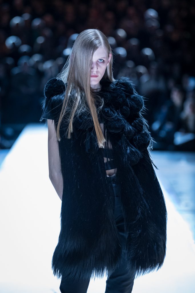 Die Kollektion, diesmal ausschließlich in Schwarz, Weiß und grau gehalten, ist für Esther Perbandt typisch unisex. Sowohl Frauen als auch Männer können die Designs tragen. Mit der Kollektion, die elektrisch avantgardistisch und antizyklisch ist, schuf die Designerin radikal visionäre Kleidungsstücke, die mit den Kontrasten zwischen Schwarz und Weiß, Alter und Geschlecht spielen. Esther Perbandt steht im Wesentlichen für mühelose Androgynie und Unabhängigkeit und hat sich international durch ihre starken Bühnenproduktionen einen Namen gemacht.