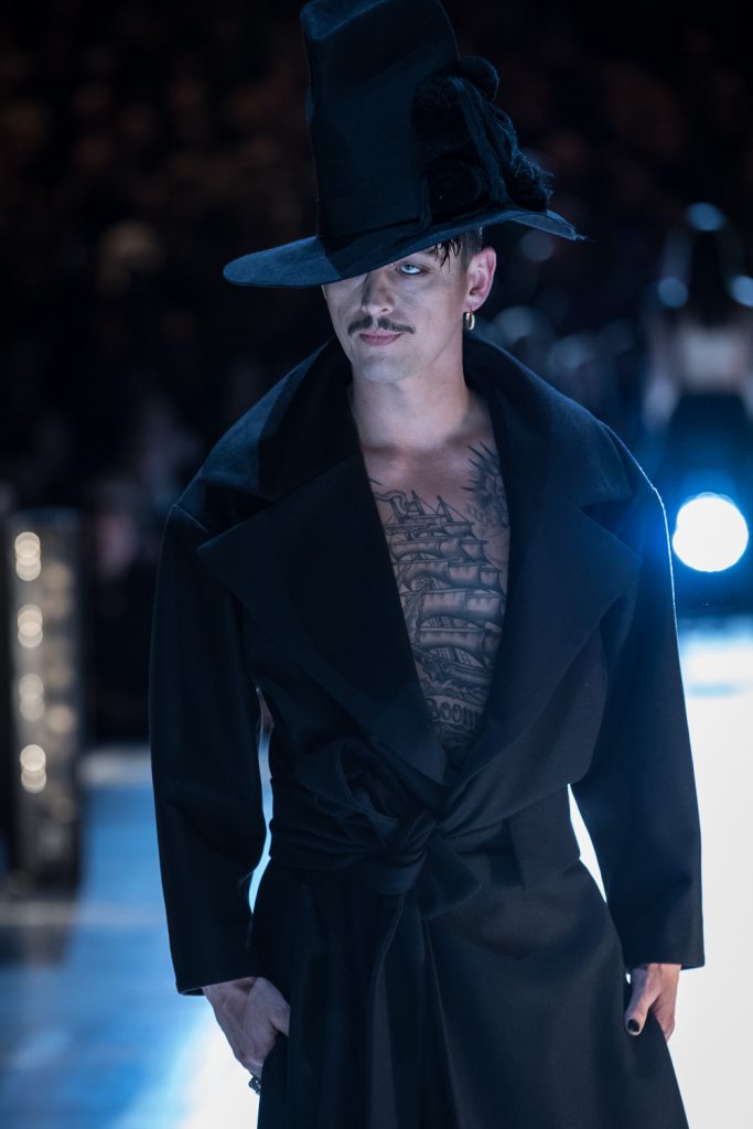 In dieser Saison präsentierten außergewöhnliche „Charaktere“ die Kollektion: Deutschlands erstes Supermodel, die 76-jährige Mode-Ikone Vera „Veruschka“ von Lendorff war mit dabei, ebenso Volksbühnen-Schauspieler Alexander Scheer.