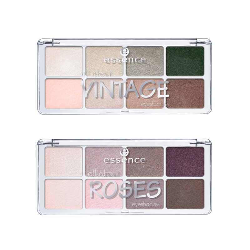 All about… NUDES, BRONZE, ROSES, GREYS und VINTAGE! Das sind die fünf neuen Lidschatten-Paletten mit Wow Faktor von essence. Jede Palette bietet acht trendige, perfekt aufeinander abgestimmte Farben – von hellen Nuancen über mittlere bis hin zu dunklen Tönen. Die softe und langanhaltende Textur mit unterschiedlichen Effekten wie matt, schimmernd oder metallisch, ermöglicht vielseitige Looks. Softe Nuancen für den Tag und intensivere Farben für den Abend – hier findet jede Beauty die persönliche Lieblings-Palette. Erhältlich 01 bronze, 02 nudes, 03 roses, 04 greys und 05 vintage.