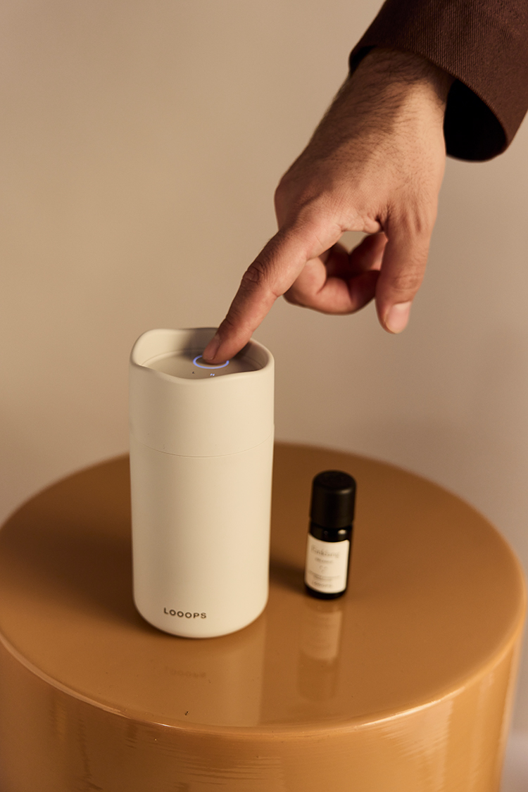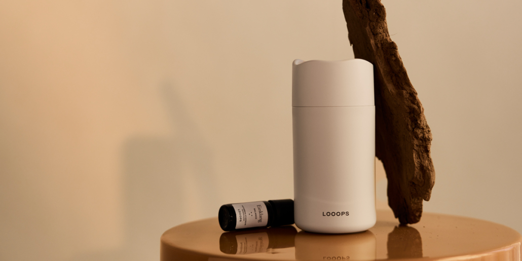 Mit Aeris erweitert Looops sein Sortiment um einen portablen Aroma-Diffuser. Er vernebelt naturreine ätherische Öle ruhig und gleichmäßig im Raum. Ein Diffuser, der sich flexibel einsetzen lässt – zuhause, im Büro oder unterwegs.