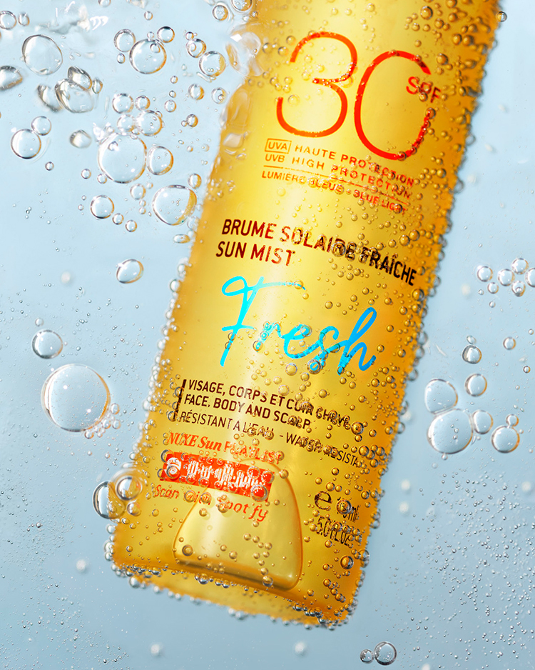 Das NUXE Sun Mist Fresh LSF 30 ist ein Spray, das mit seiner ultra-leichten, frischen Textur wie ein feiner Nebel auf der Haut liegt. Es zieht sofort ein, ohne einen fettigen oder klebrigen Film zu hinterlassen und versorgt die Haut bei 100 % der Anwender intensiv mit Feuchtigkeit – für eine wunderschön aussehende Bräune. Der feine Sprühnebel sorgt für sofortige Frische und hinterlässt ein gepflegtes Hautgefühl, begleitet von sonnigen Duftnoten der Kollektion – eine echte Reise für die Sinne. Das Besondere? Das Spray ist auch für die empfindliche Kopfhaut geeignet. Dank des 360 Grad Sprühkopfs können auch mühelos Rücken und Beine eingesprüht werden – für einen echten rundum Schutz.