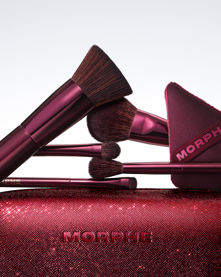 Ab in den Urlaub mit dieser Auswahl an fünf Gesichts- und Augenpinseln in Reisegröße sowie einer doppelseitigen Puderquaste in ihrer limitierten metallischen Tasche. Eigenschaften und Vorteile: Sechsteiliges Pinsel- und Werkzeugset, von Experten designt für weniger schnelles Ausfransen, Ausfallen und Streifenbildung. Mit Silberionen angereicherte Borsten, die schädliche Bakterien um 99,9 % reduzieren. Preis: 29 Euro über morphe.com.