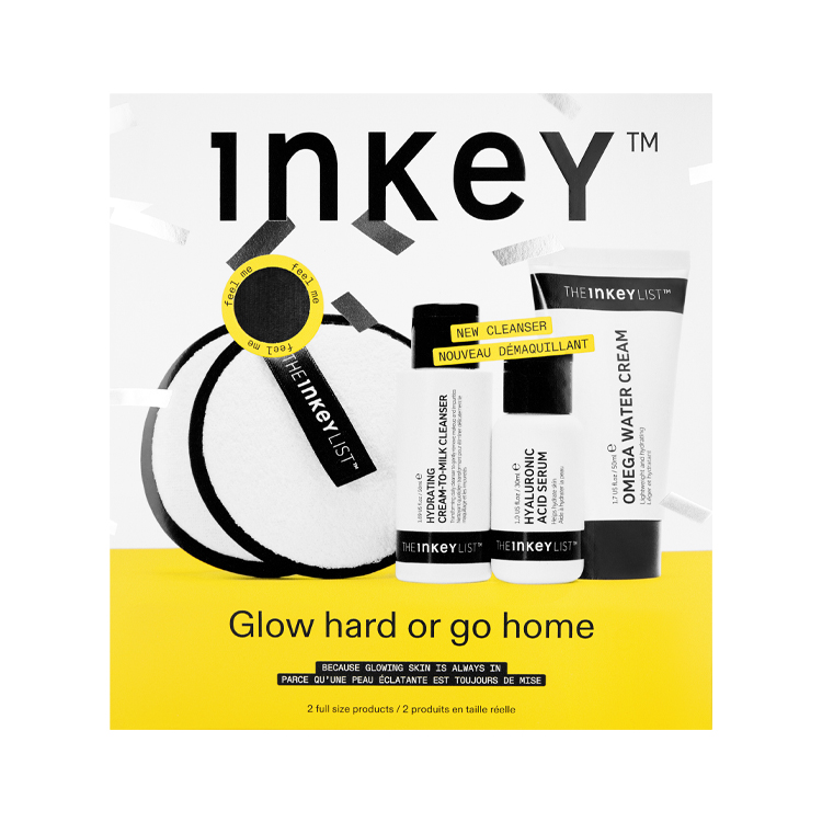 Drei Hydration-Ikonen – Hydrating Cream-to-Milk Cleanser für 24 Stunden Feuchtigkeit*, das Nr. 1-Bestseller Hyaluronic Acid Serum und die Kult-Omega Water Cream – plus zwei wiederverwendbare Reinigungspads für ein einfaches Make-up-Entfernen. Für Haut, die noch lange nach dem letzten Champagnerkorken strahlt. Preis: 22 Euro über theinkeylist.com.