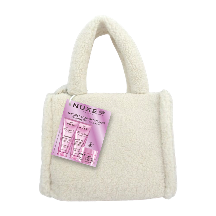 Diese trendige Tasche ist das absolute Musthave unter den Weihnachts-Geschenksets 2025. Sie enthält drei Essentials aus der Hair Prodigieux-Serie für glänzendes, seidiges Haar mit einem zarten, blumigen Duft. Dieses außergewöhnliche Trio – Shampoo, Conditioner und Balsam – bietet ein einzigartiges sensorisches Erlebnis, das die volle Wirksamkeit der NUXE-Haarpflege offenbart. Preis: 54,90 Euro über nuxe.de.