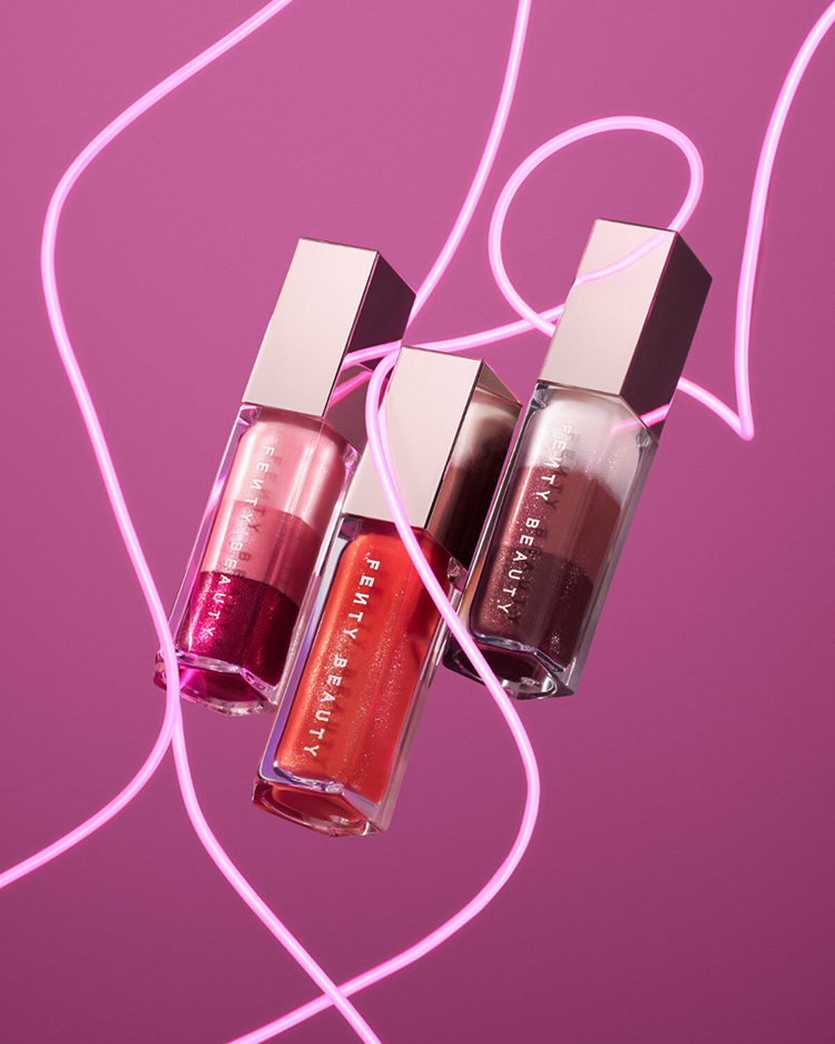 Dieses Set enthält drei Gloss Bomb Universal Lip Luminizers in brandneuen Nuancen, darunter „Fenty Glow Fantasy“ (schimmerndes Rosé-Nude) sowie zwei neue Gloss Bomb Stackz Layered Lip Luminizer – „Sugar Plumz“ (Magenta) und „Spiked Hot Chocolit“ (schimmerndes Schokobraun). Preis. 45 Euro über sephora.de.