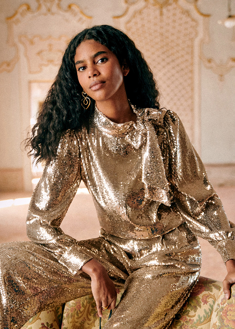 Die limitierten Capsule Statement-Pieces mit Couture-Volumen und Sets in eleganten Materialien – luxuriöse Seide, aufwendige Stickereien und anmutige Jacquards – Accessoires wie Schmuck, Taschen und Schuhe komplettieren den Look und zeigen das gesamte Savoir-Faire Spektrum von Sézane.