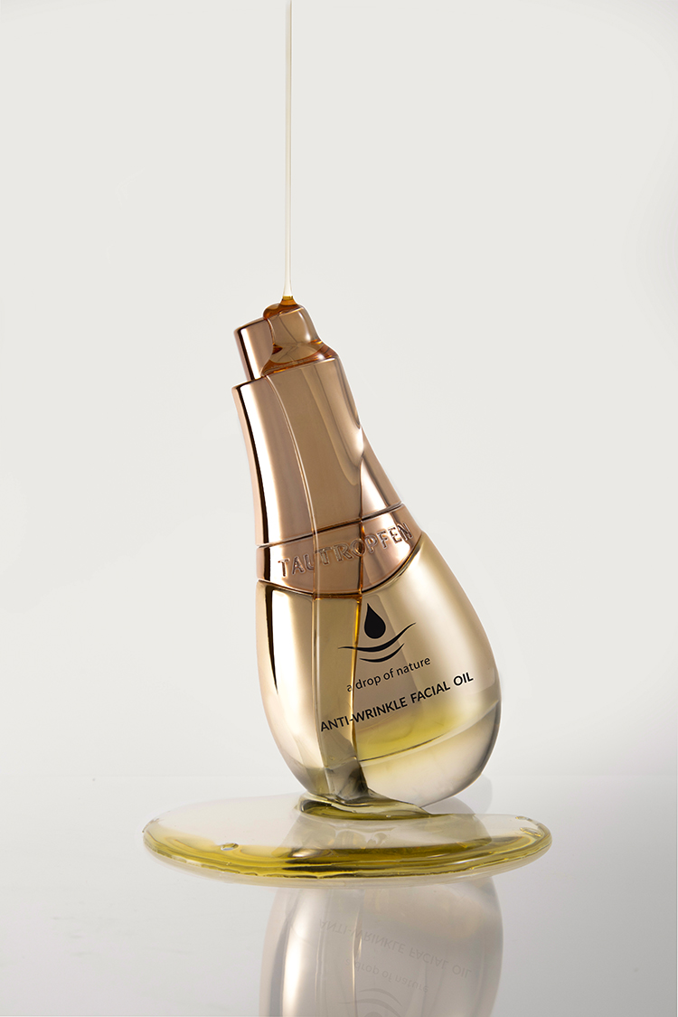 Die Wirksamkeit des Anti-Wrinkle Gesichtsöls ist zudem durch eine unabhängige Wirksamkeitsstudie belegt. Die Untersuchung bestätigt nach regelmäßiger Anwendung messbare Verbesserungen des Hautbildes, darunter eine sichtbare Reduktion von Falten sowie eine gesteigerte Hautelastizität und -glätte. Die Ergebnisse unterstreichen den Anspruch von TAUTROPFEN, natürliche Inhaltsstoffe mit nachweislich effektiver Anti-Aging- Wirkung zu verbinden – transparent, fundiert und im Einklang mit den Prinzipien zertifizierter Naturkosmetik. Auch in puncto Gestaltung setzt das Produkt Maßstäbe: Das Anti-Wrinkle Gesichtsöl wurde mit dem German Design Award ausgezeichnet. Prämiert wurde das Packaging für seine klare, zeitlose Designsprache, die Natürlichkeit, Hochwertigkeit und moderne Ästhetik vereint und damit die Markenwerte von TAUTROPFEN konsequent widerspiegelt. Ergänzt wird das Design durch einen innovativen Pipetten-Deckel mit Klick-Verschluss, der ein Auslaufen verhindert und dank selbstsaugender Mechanik beim Öffnen automatisch 0,2g Öl – die ideale Menge pro Anwendung – dosiert. Schnell, sauber und komfortabel. Die Flasche aus recyceltem Glas ist vollständig recyclebar und verbindet klassische Eleganz mit Nachhaltigkeit. So setzt das Packaging neue Maßstäbe für ästhetische und funktionale Kosmetikverpackungen.