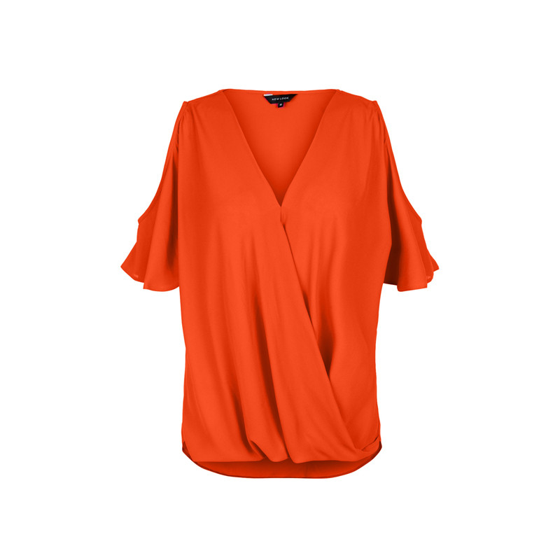 - Oranges schulterfreies Wickeloberteil © New Look ca. 23 €