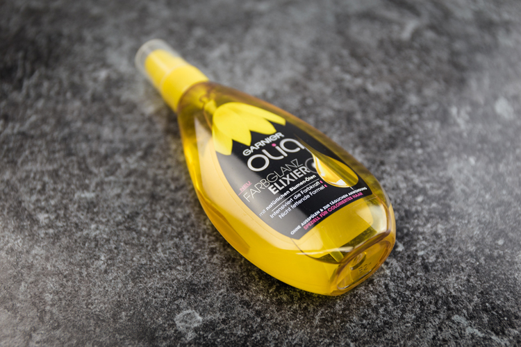 Das Farbglanz Elixier von Garnier ist ein Öl, das gerade coloriertem Haar Glanz und intensive Farbkraft verleihen soll. Es hat eine nicht fettenden Formel und ist mit natürlichen Blumen-Ölen angereichert, die zudem einen angenehmen Duft verströmen.