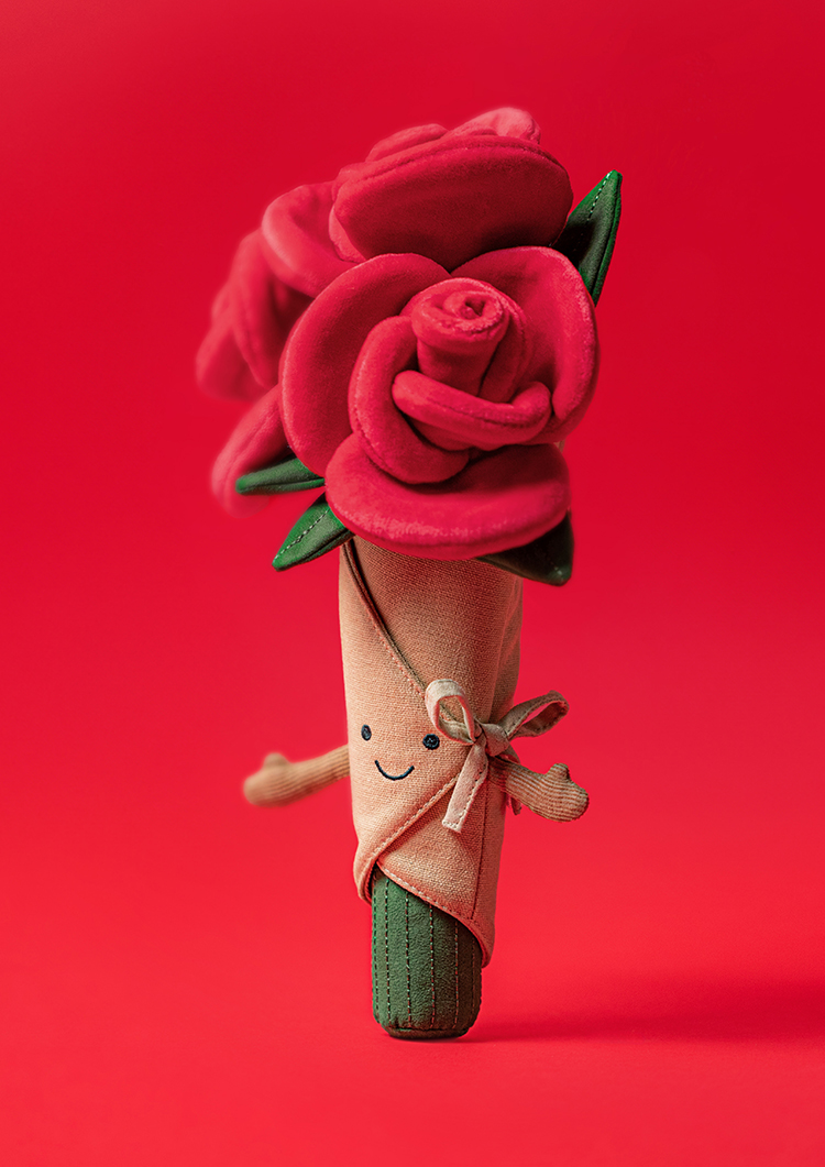 Blumen gehen immer, aber am Valentinstag darf es ruhig etwas sein, das länger bleibt als ein paar Tage in der Vase. Das Amuseables Rose Bouquet bringt die Romantik einer Rose, plus den Kuschelbonus. Das Bouquet sieht aus wie ein kleiner Strauß aus samtig-roten Rosen, dazu ein süßes, besticktes Gesicht und eine Schleife, die es noch charmanter macht. Genau diese verspielte Optik macht es zur perfekten Idee für alle, die klassische Rosen lieben, aber keine Standard-Geste wollen. Die Story dahinter passt so gut zum Valentinstag: Liebe zeigt sich im Alltag, in Umarmungen zur richtigen Zeit und in den kleinen Dingen, die man einfach macht. Dieses Bouquet ist genau so eine Aufmerksamkeit, die sagt: „Ich hab an dich gedacht.“Mit 30 cm Sitzhöhe ist es groß genug, um auf Sofa, Bett oder Schreibtisch direkt Wirkung zu machen. Die Materialien aus Polyester und Leinen fühlen sich soft an, die Füllung sorgt dafür, dass es stabil sitzt. Und der größte Vorteil: Es bleibt genauso hübsch, egal ob du es täglich knuddelst oder als Deko-Piece stehen lässt. Preis: 55 Euro über jellycat.com.