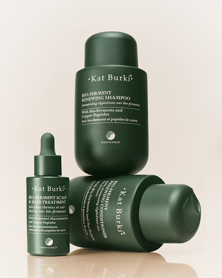 Das Bio-Ferment Scalp & Hair Treatment wirkt von der Wurzel aus dank fermentiertem Reiswasser, Seidenaminosäuren und Kupferpeptiden. Die Formel, reich an Polyphenolen, Peptiden, Biofermenten und Vitaminen, beugt Haarausfall vor, fördert das Nachwachsen, stärkt und repariert die Haarfaser von der Wurzel bis in die Spitzen mit sofort sichtbareren Ergebnissen: Geliftete Ansätze, gepflegte Haarfasern und eine Mähne voller Vitalität. Preis: 83 Euro über katburki.com.