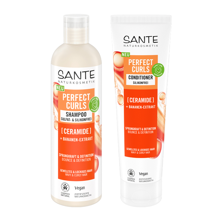 Mit der neuen Serie „Perfect Curls“ lanciert SANTE erstmals eine natürliche, hochwirksame Haarpflege für welliges, lockiges und krauses Haar – mit zwei perfekt abgestimmten Produkten: einem sulfatfreien Shampoo und einem intensiv pflegenden Conditioner. Das „Perfect Curls Shampoo“ reinigt Locken besonders sanft und erhält dabei die natürliche Lipidstruktur des Haares – ohne auszutrocknen. Die Formel mit Zuckertensiden ist mikrobiomfreundlich und sorgt für gepflegte Kopfhaut und geschmeidige Längen. Mit nährendem Bananenextrakt und strukturstärkenden Ceramiden versorgt der „Perfect Curls Conditioner“ Locken intensiv mit Feuchtigkeit, glättet die Haaroberfläche und reduziert so Haarbruch und Frizz – für geschmeidige, definierte Locken ohne zu beschweren. Preis: 4,99 Euro über www.sante.de.
