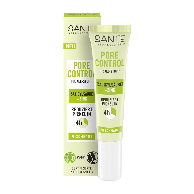 Mit dem neuen „Pore Control Pickel-Stopp“ lanciert SANTE ein punktgenaues SOS-Produkt gegen Hautunreinheiten – unkompliziert, schnell wirksam und ideal für unterwegs. Das handliche Spot-Treatment arbeitet gezielt gegen Pickel, Entzündungen und Rötungen – mit effektiven Wirkstoffen wie 2 % Salicylsäure, Zink, beruhigendem Bio-Salbei-Extrakt und klärendem grünem Tee. Preis: 4,99 Euro über www.sante.de.