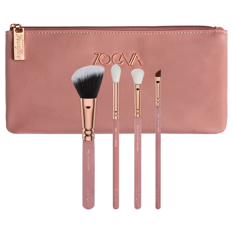 Das limitierte, exklusiv für Douglas entworfene ZOEVA BEYOND ROMANCE SET vereint die feminine Aura von Rosa mit einer geheimnisvollen, erwachsenen Facette der Weiblichkeit und bietet eine romantische Komposition aus vier luxuriösen, handgefertigten Pinseln für Gesicht und Augen, verpackt in einer eleganten Clutch.